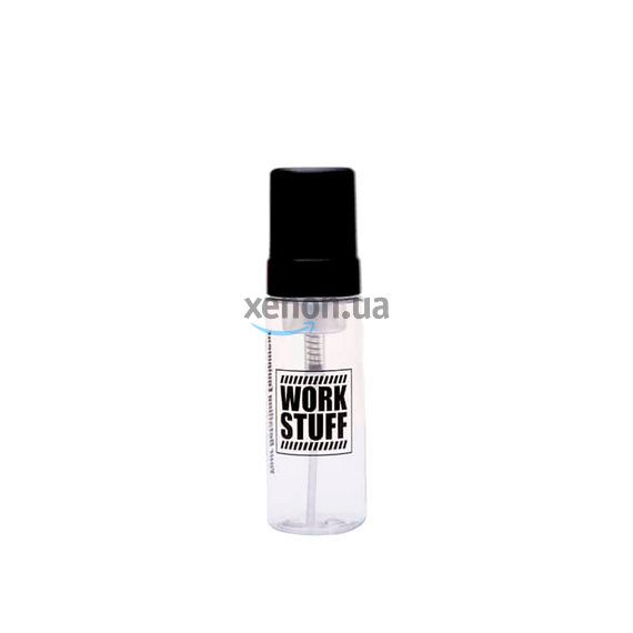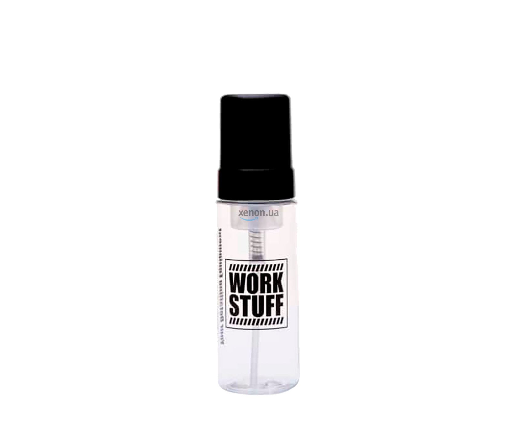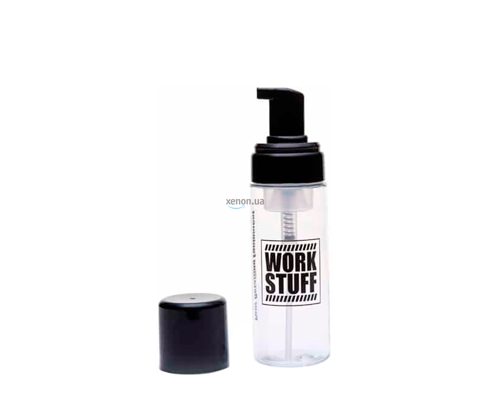 Foam Bottle від WORK STUFF – це флакон об'ємом 150 мл з пінним дозатором з міцного прозорого ПЕТ-пластику. Він створений для зручного розливу та дозування засобів для очищення. Піна наноситься прямо на кисть чи щітку, щоб не потрапляти на інші елементи салону чи кузова. Цього неможливо досягти за допомогою звичайних пульверизаторів.