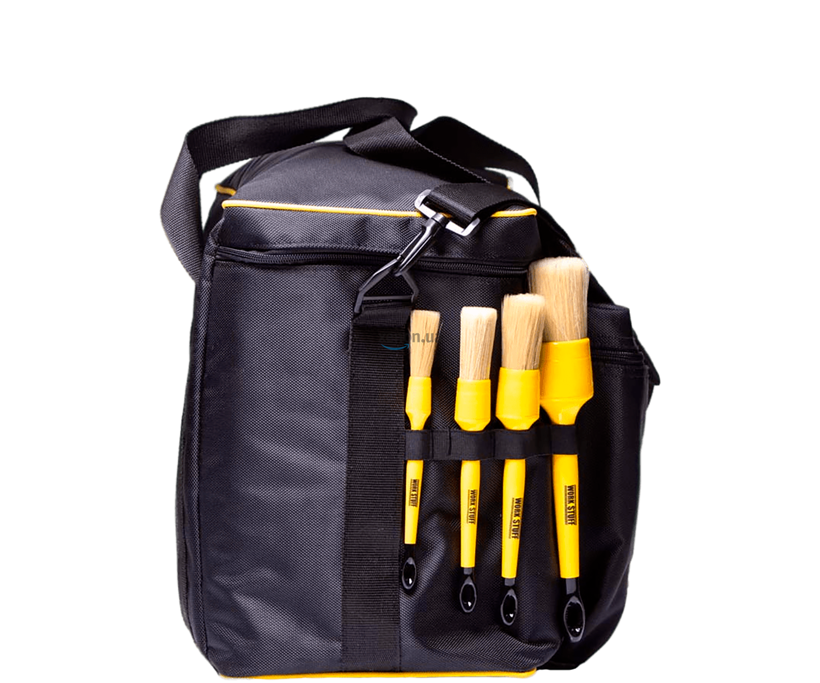 Сумка Work Bag оснащена ручками та плечовим ременем, що дозволяє переносити її на плечі і забезпечує зручність та легкість при перенесенні. Вона ідеально підходить для використання в автомайстернях, будівельних та інших професійних галузях, де потрібен зручний та надійний органайзер для зберігання та перенесення інструментів.