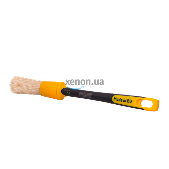 Эргономичная ручка из прорезиненного материала обеспечивает улучшенный хват и предотвращает выскальзывание кисти из рук. Кисть особенно подходит для очистки дисков, стыков, проемов, молдингов, решеток, шильдиков, кнопок стеклоподъемников и щелей воздуховодов.