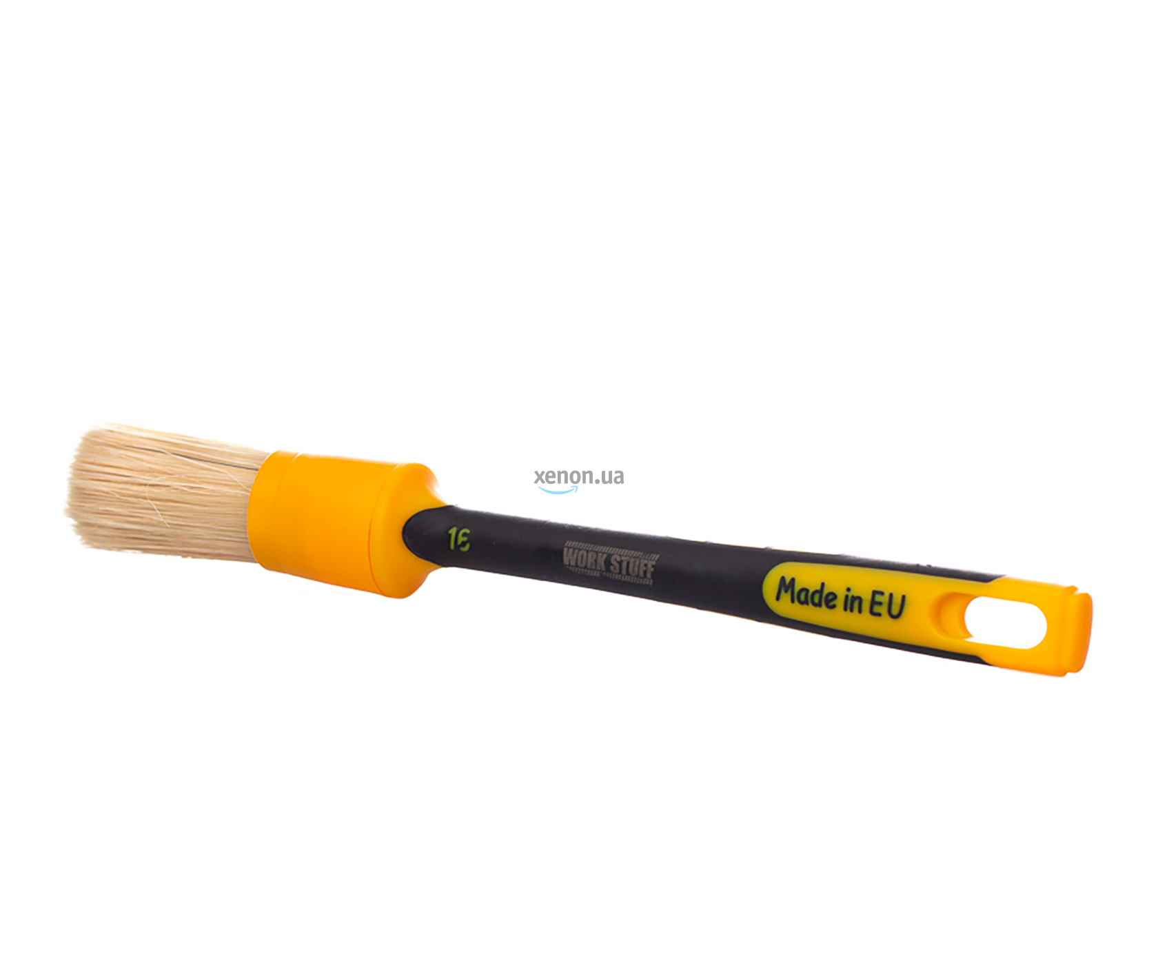 Эргономичная ручка из прорезиненного материала обеспечивает улучшенный хват и предотвращает выскальзывание кисти из рук. Кисть особенно подходит для очистки дисков, стыков, проемов, молдингов, решеток, шильдиков, кнопок стеклоподъемников и щелей воздуховодов.