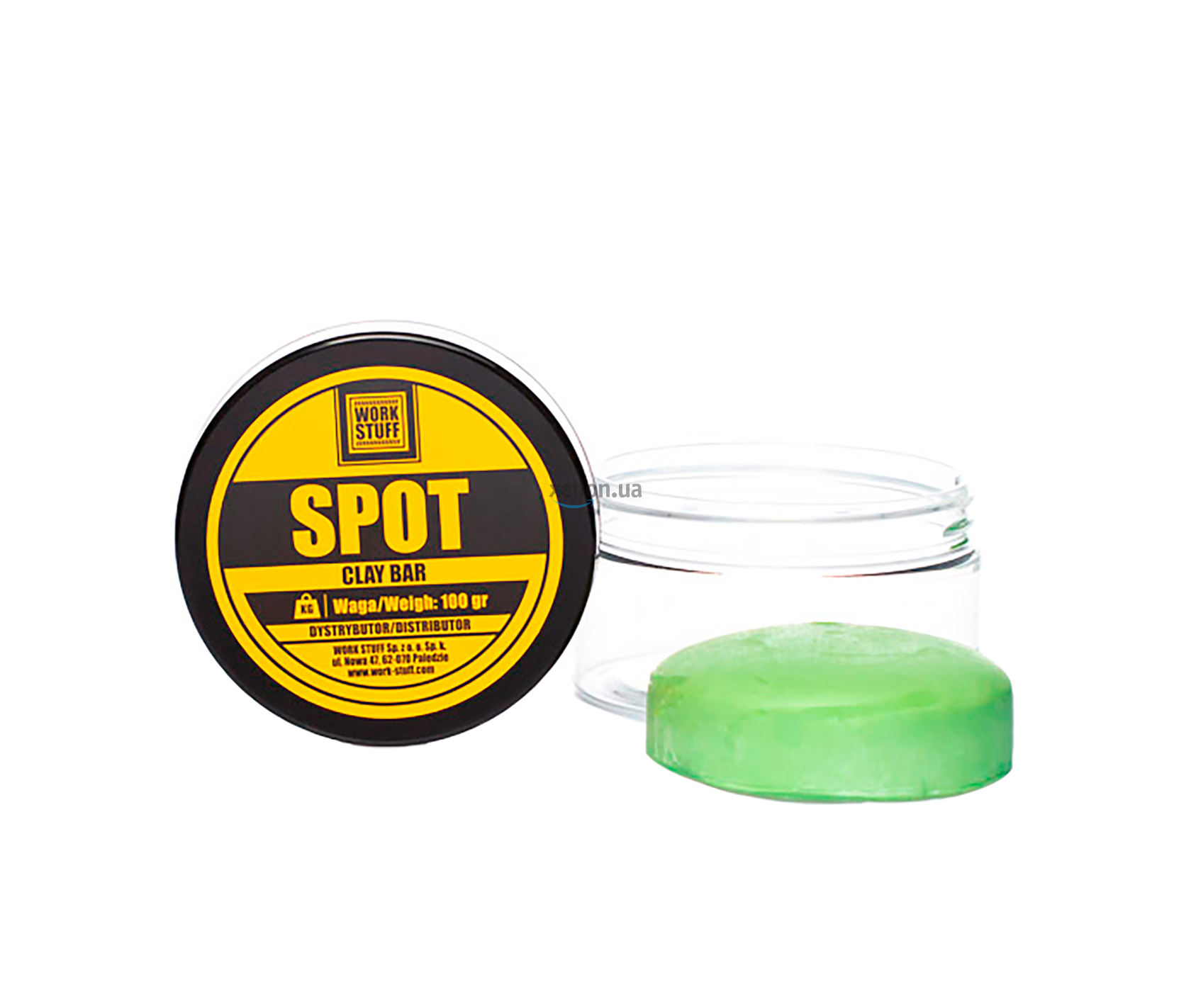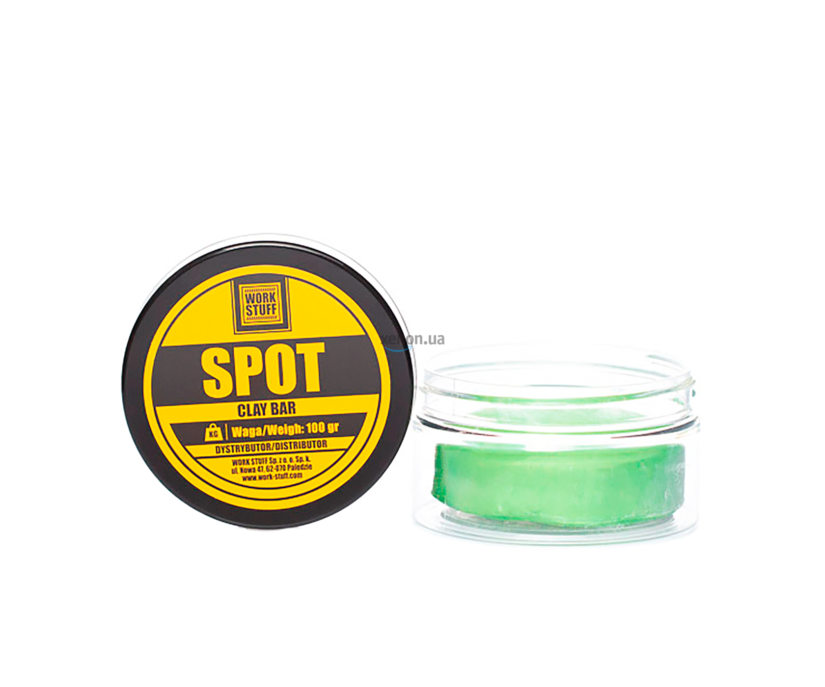 Spot Clay Bar – глина средней жесткости для очистки лакокрасочного покрытия автомобиля бренда WORK STUFF. Она устраняет грязь, пыль от тормозных колодок, смолу и битум с дорожного покрытия. Эту глину можно использовать для автомобилей любого цвета и оттенков, глянцевых и матовых. Она также подойдет для очистки кузова перед полировкой и обработкой защитными покрытиями.
