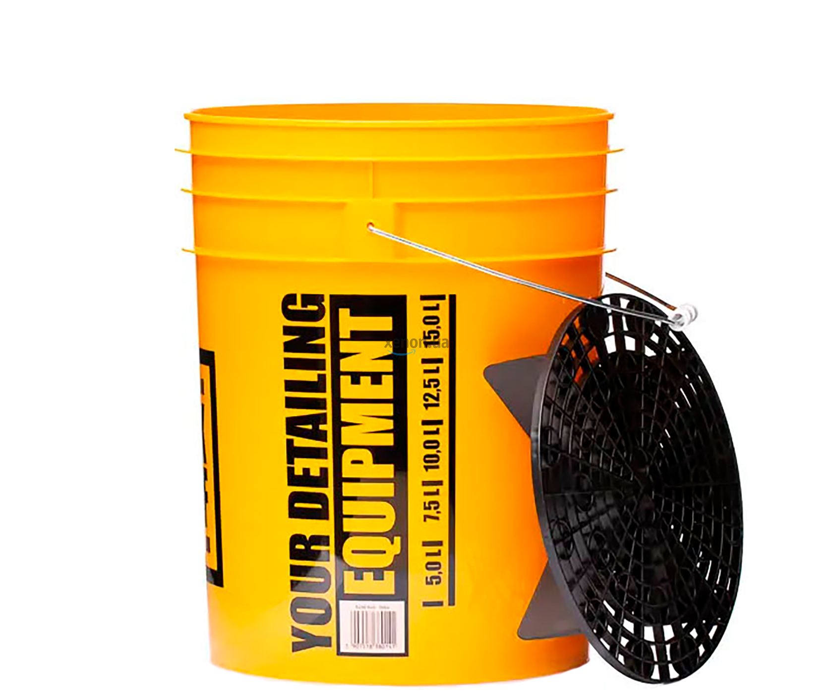 Work Stuff Detailing Bucket Yellow — ведро с грязеуловителем для ручной мойки автомобиля, которые было разработано, с учётом всех требований профессионалов. Оно изготовлено из полиэтилена высокой плотности (HDPE), который обеспечивает надежность и долговечность в использовании. Боковые мерки на ведре позволяют легко измерять нужное количество воды, а максимальная вместимость в 20 литров гарантирует, что у вас будет достаточно воды и пены на протяжении всего процесса мойки. Металлическая ручка обеспечивает удобство переноски ведра, а ярлык «WASH» ясно указывает на предполагаемое использование продукта.