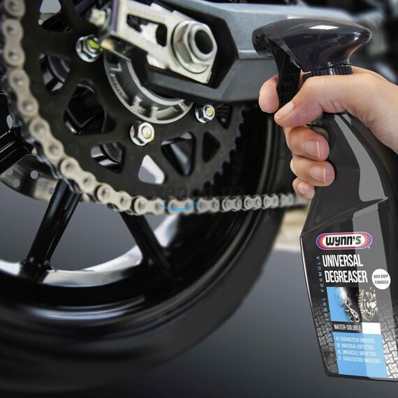 Универсальный обезжириватель WYNNS Universal Degreaser W41103 500 мл - это сверхпрочный состав, предназначенный для удаления масла, смазки, смол и парафина с мотоциклетных цепей, двигателей, механизмов, кузова, шин, дисков, инструментов и т. д.